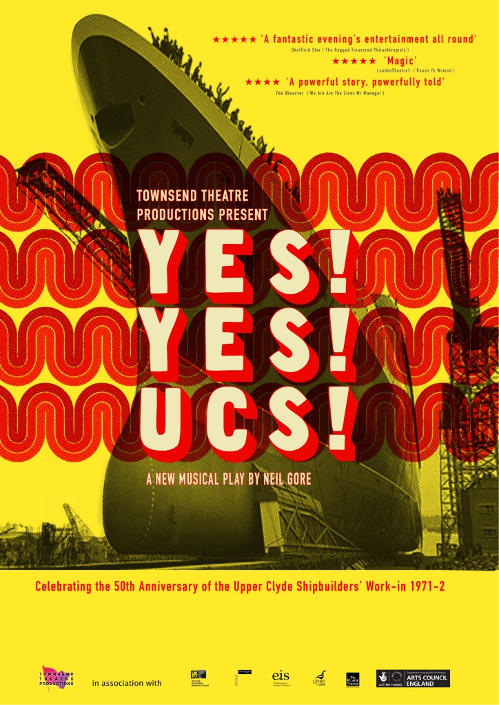 Spring 2022 will see them present Yes! Yes! UCS!,a brand-new, musical play that chronicles the story of the Upper Clyde Shipbuilders (UCS) Work-In that took place in 1971-72. In celebration of the 50th anniversary, they will bring theatrical storytelling that combines live rock and folk music from the early ‘70s with a graphic art animated projection to bring a message of social justice and the importance of the fight for the right to work.