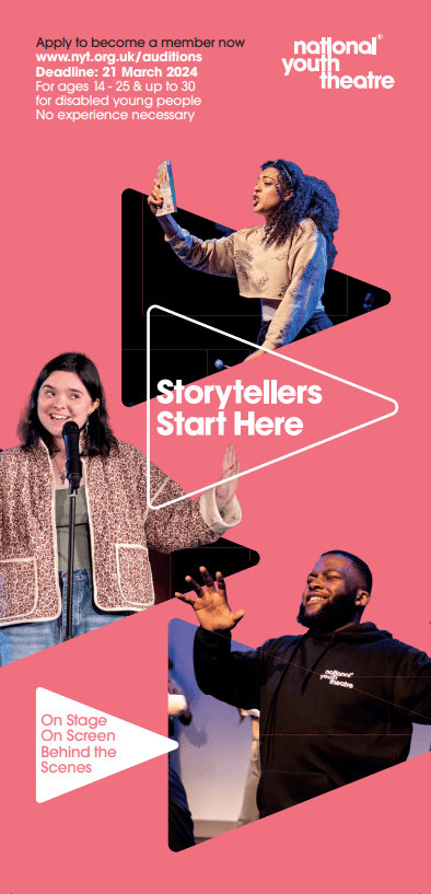 CEO & Artistic Director of NYT Paul Roseby OBE said “We welcome all young people to this year’s auditions, especially those with zero previous experience. We are a home for young storytellers, on stage, on screen and behind the scenes. We invite young people to come and tell their stories with us. Without the next generation of young talent there’s no talent pipeline or thriving creative industries – so we need you!”